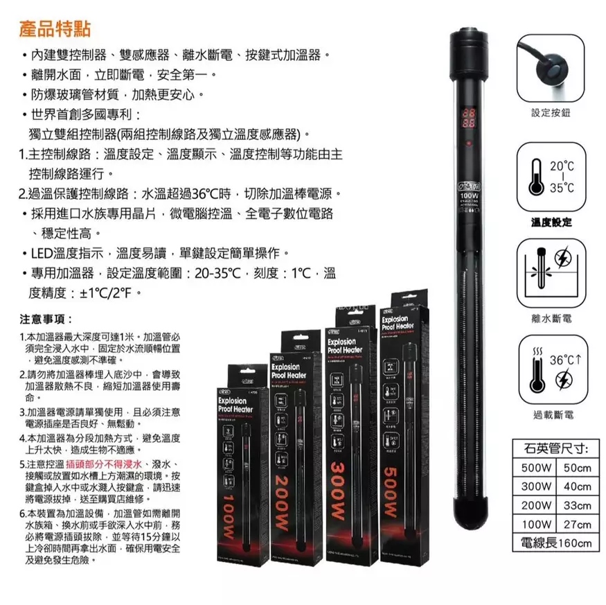 伊士達 ISTA 離水斷電雙顯加溫棒100W/200W/300W/500W